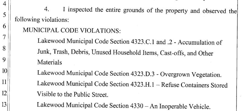 The City of Lakewood is another City that is overeager to unnecessarily enforce Municipal Codes on non-City Property without any necessity, where there is no "Public" Nuisance or need.